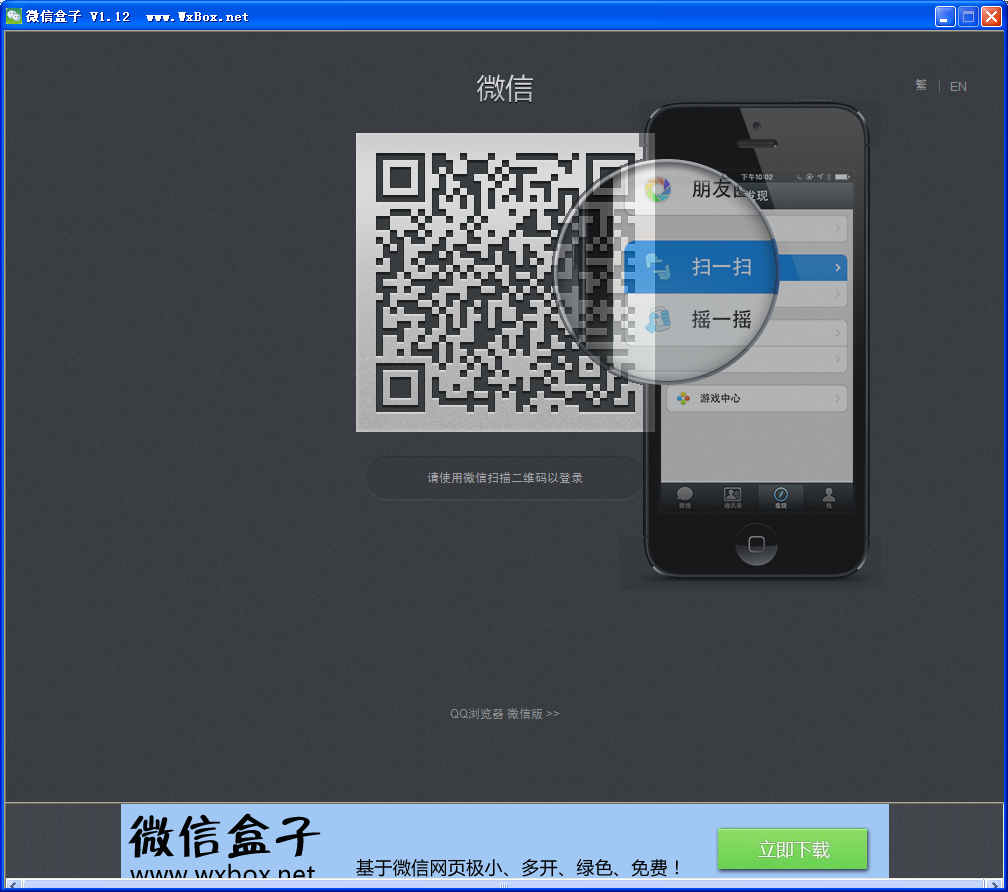 微信盒子小巧绿色并支持多个微信帐号登陆使用。微信盒子是基于微信网页版开发的一款微信桌面版应用,不用打开就能直接扫描二维码登陆桌面微信。