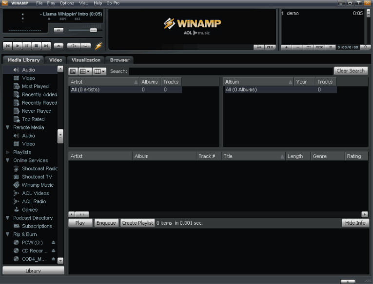 它有一个非常可定制的媒体库,并允许您翻录和刻录您喜爱的音乐CD。 Winamp拥有数千种皮肤和插件,可让您改变播放器的外观和感觉,并添加新功能。 该播放器还可以使用XM从SHOUTcast Rad和AOL Radio访问数千首免费歌曲,视频和在线广播电台。