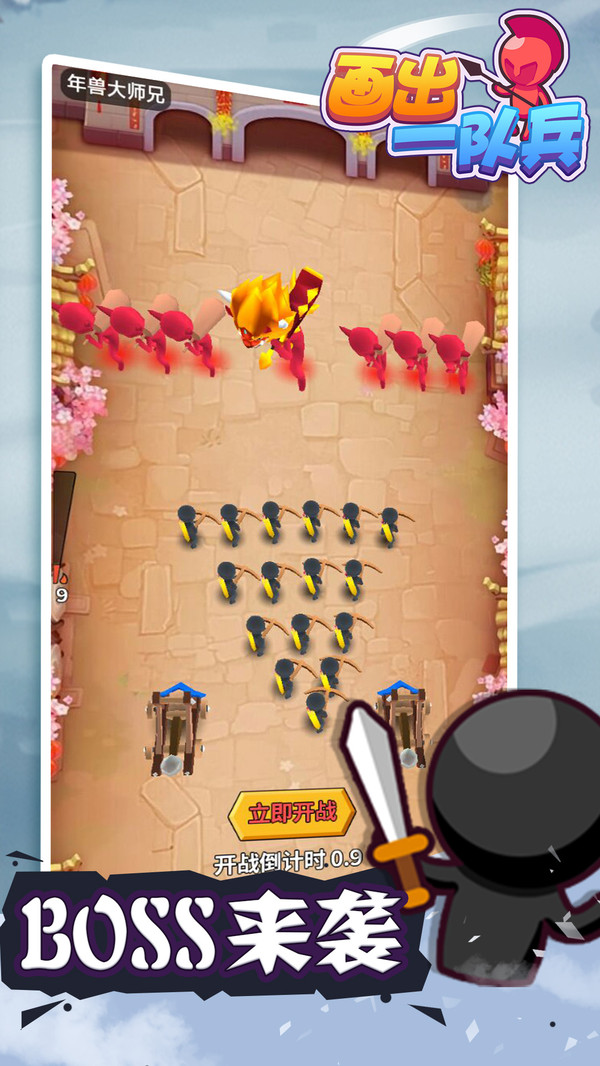 画出一队兵,是一款休闲,玩家通过画线获取你的士兵阵型,各种阵型搭配,不同兵种根据属性来组队出战,消灭来袭的敌人boss,横扫战场成为最后胜利者吧。