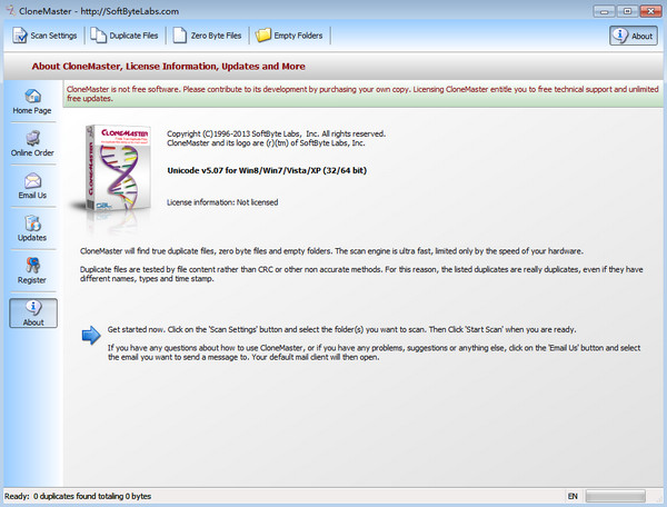 CloneMaster不仅可以找到重复的文件,还可以找到零长度的文件(空文件)和空文件夹。