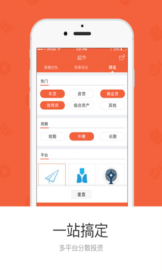 【精选标的】:专业的风控团队多维度深入调研网贷平台,精选以国资背景,上市公司系平台,以抵押的标的为主的新手标、短期标、长期标,年化收益8~18%,标的丰富、一站式解决您的投资需求、分散又安全