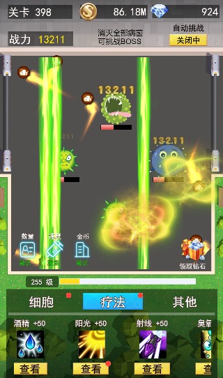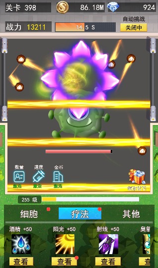 培养细胞,使用疗法,让细胞获得强力的技能,消灭病菌。