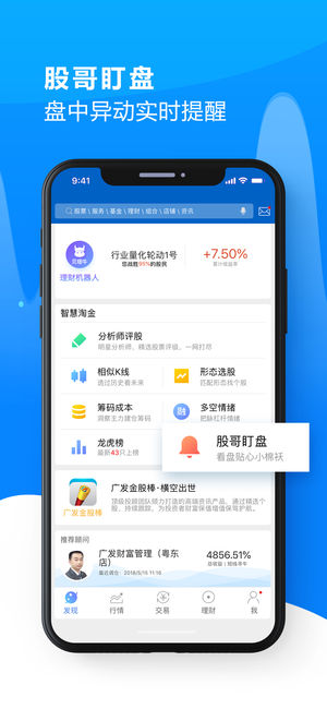 最权威的投顾服务:与、大智慧、、天天基金、自选股、百度股市通、雪球、万得股票、益盟操盘手、公牛炒股、优顾炒股、牛股王、爱投顾、360股票、京东股票等炒股软件的主要区别在于广发证券所有投顾高手均是证监会持牌投顾,专业靠谱。