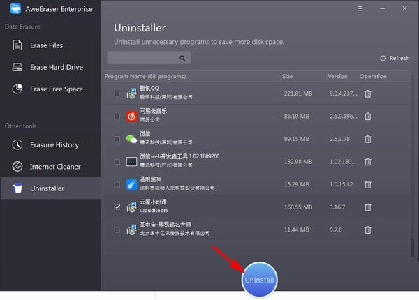 功能强大的卸载程序,可帮助您逐个或批量卸载不需要的程序,并清理应用程序相关文件。释放计算机上的更多磁盘空间