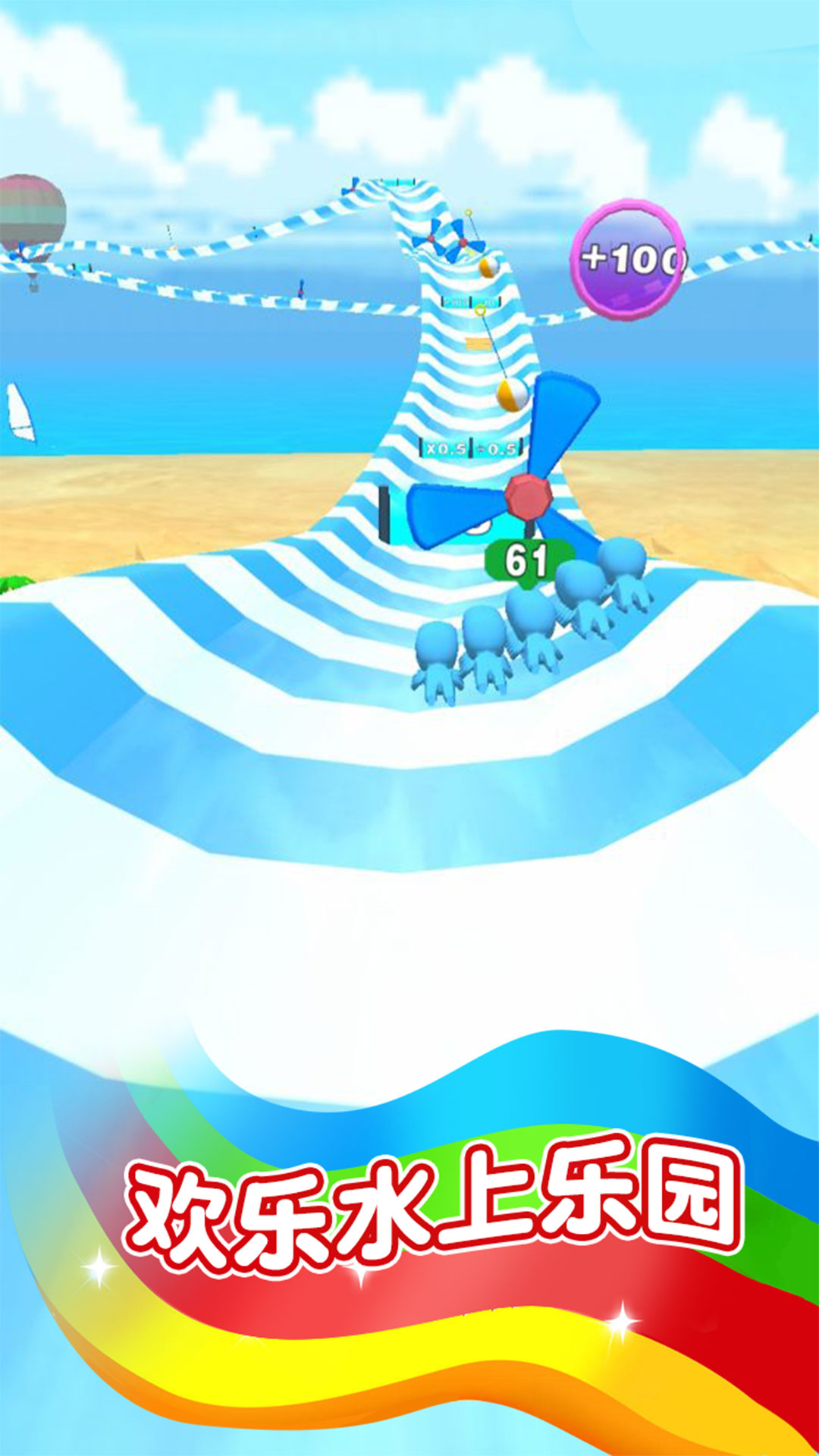 水上冒险乐园,一款水上滑滑梯。游戏画风简洁,在炎炎夏日来一场水上大作战,操控你的小人挑战水上滑滑梯,疯狂加速,看看谁能最先到达终点,欢乐不断。