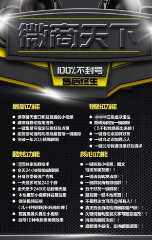 暴力添加附近人,此功能非传统的打招呼加粉,而是将附近人强制添加到你的微信通讯录中,故此,该功能非常的安全。同时暴力加粉也可配合天下游,可虚拟定位或扫街,全天可定点发送数千次招呼,只需手指轻轻一点,每日可坐收数百名粉丝。