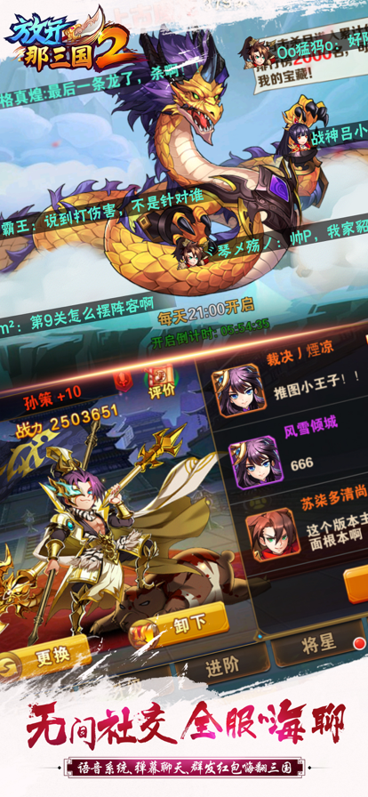 《》正统续作,放不开的三国游戏《》经典回归,延续经典特色,更要创新体验,更Q萌的画风,更酷炫的技能特效,更畅爽的战斗体验;延续前作回合制的战斗方式,更新阵容安排,加入时机掌握,深化策略性;放开那三国2,快踏上全新的三国之旅吧!
