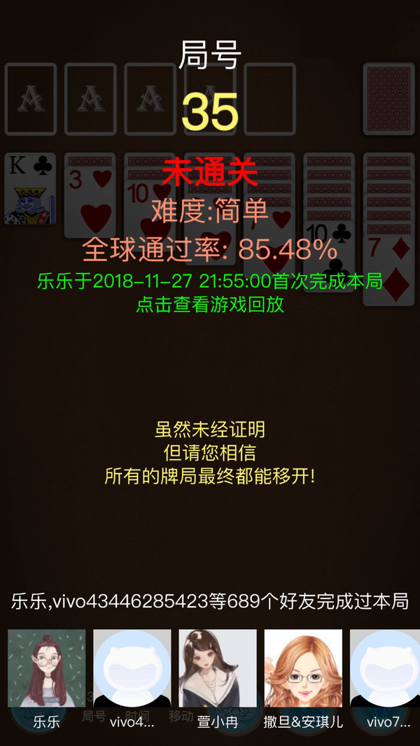 3、经典接龙纸牌游戏采用经典的得分规则,累计统计以往成绩,让你不断突破自己。
