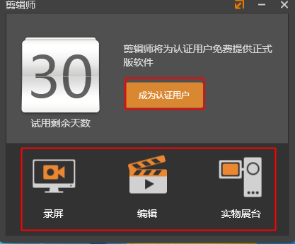 3、这是试用30天,点击成为认证用户额可以免费使用正式版,有录屏,编辑,实物展台功能