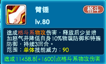 当亲密度达到二十级的时候-臂锤:造成格斗系物攻伤害,释放后少量增加怒气并降低自身10%物理和特殊防御,持续3回合。属于单技能,技能威力90