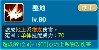 初始技能-整地:造成地上系物攻伤害。属于单体技能,技能威力70