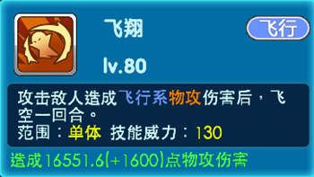 当亲密度达到五级的时候-飞翔:攻击敌人造成飞行系物攻伤害后,飞空一。属于单体技能,技能威力130