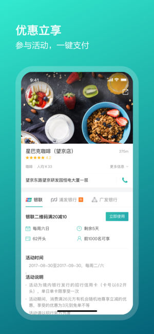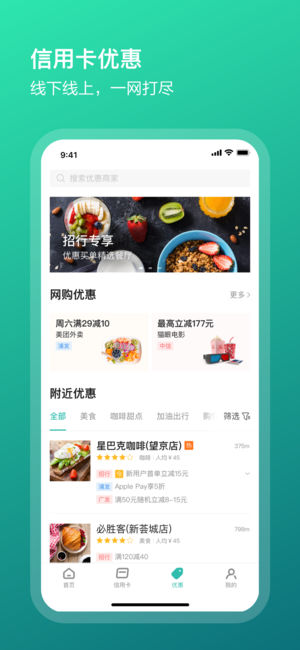 1、信用卡优惠大全:周边优惠实时推荐,身边“折扣”不再错过;
