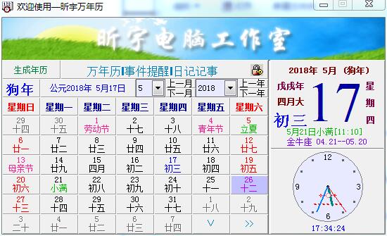 昕宇万年历是集万年历、节气、自定义节日生日、、事件提醒、事件倒计时牌、闹钟、世界时间、人声报时、自动效时、天气预报、数九数伏、天干地支、生肖星座、定时开关机、定时播放声音、视频文件、运行程序、精美个性年历制作等功能于一身。个性化设置,功能强大,应用灵活,是一款商务、办公中不可多得的桌面小工具。