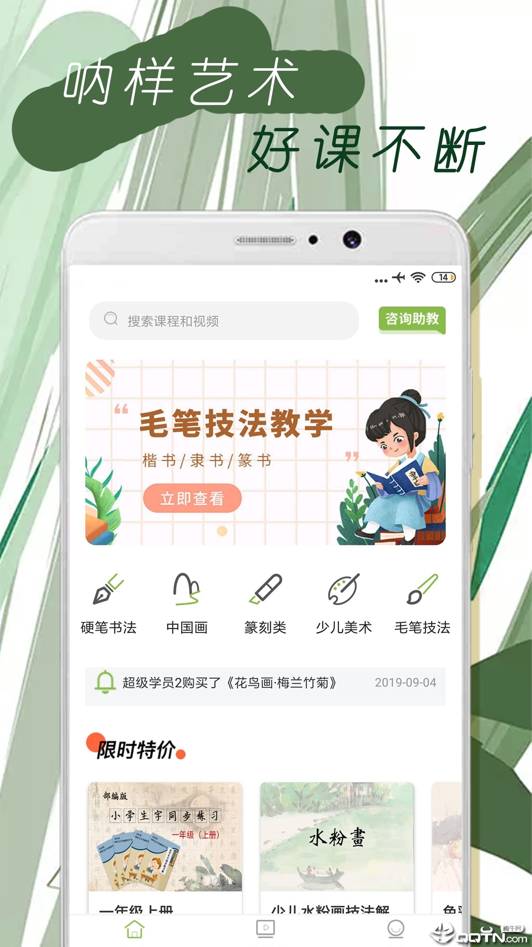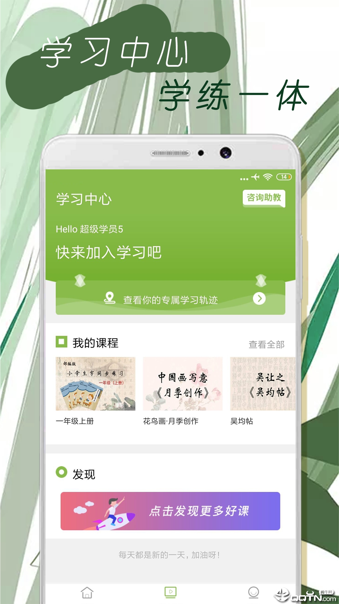 适合所有零基础又想学习书法,篆刻,中国画,素描,水彩,水粉,却苦于兴趣班价格昂贵,有老师不负责任和离家距离远的所有用户!配合学习轨迹,提高学习效率