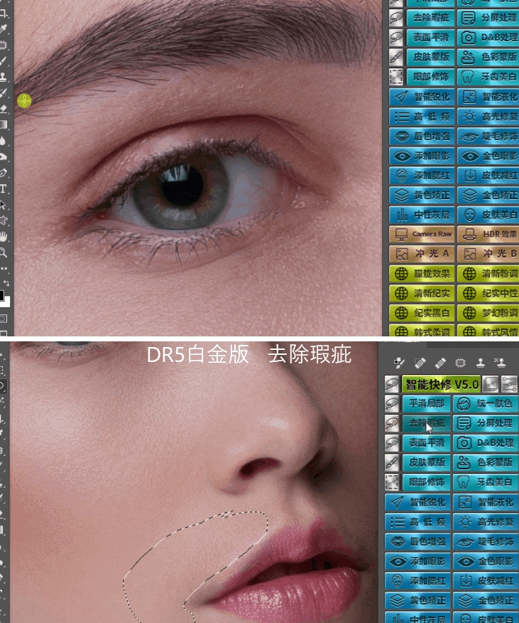 智能快修是一款非常好用的作用在PS平台的辅助插件,它可以为修图人员提供专业的修图功能,能够帮助用户进行一键快速磨皮、美白、瘦脸等操作,使用起来非常方便,有需要的用户不要错过了,赶快来下载吧!