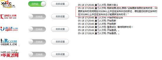 时接收多个网站求职者简历,发送邀请,查阅检索。