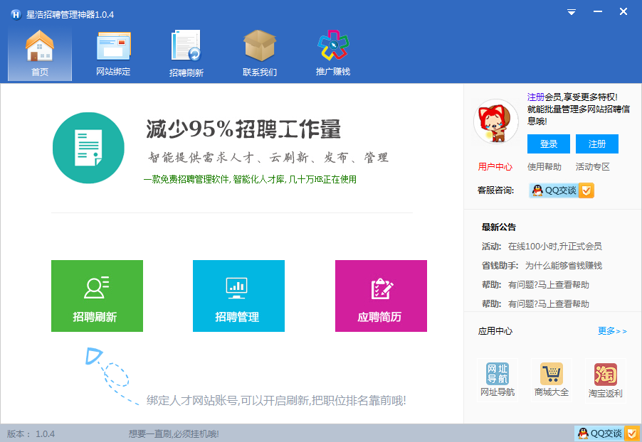 星浩招聘管理神器是一款非常好用的招聘工具,支持批量管理、查看岗位、导出应聘信息等功能,让广大HR办公效率大大提升,软件操作,绿色安全,感兴趣的朋友赶快来下载吧。