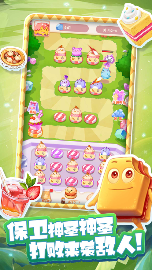 1、单手点击召唤糖果,组成军团抵御进攻,派遣糖果,完成任务获得丰厚奖励。