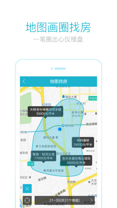 2.地图:GPS精准,地图上直接搜索心仪楼盘