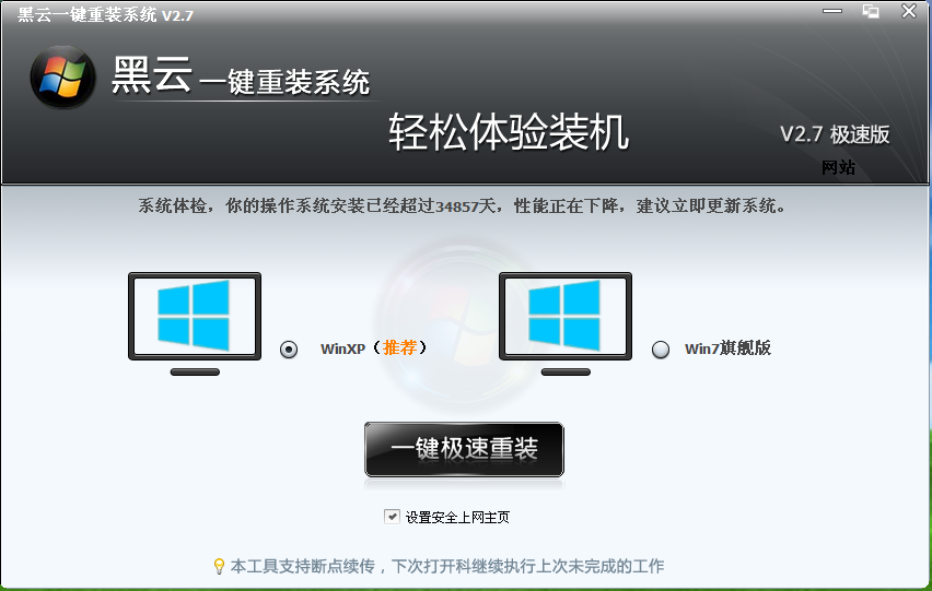 黑云能给不会重装系统的人带来了最大实惠,你完全不需要任何操作,这是一款傻瓜式的一键装机工具,有winxp和win7可供你选择。