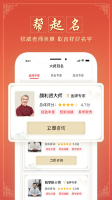 大师取名字app是一款非常不错的取名软件,这里汇集了多名姓名学研究专家,提供了免费自助起名和真人老师起名两种模式,让您不再为起一个好名字而伤脑筋啦!有需要的朋友赶紧前来下载吧!