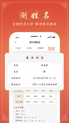 宝宝起名——根据宝宝出生时间及父母的姓名信息,分析宝宝喜用、特征和幼年时期健康状况,结合三才五格、喜用神和忌神、以及将来性格成就等配置,并综合字音字形字意,匹配出一个更适合宝宝成长、未来发展的名字。分析宝宝未来需要注意的年份吉凶,提供调节改善措施与命理上建议,如补充五行方法,性格上的缺陷改善,利好方位,衣着色彩,饰品摆设,等方面。