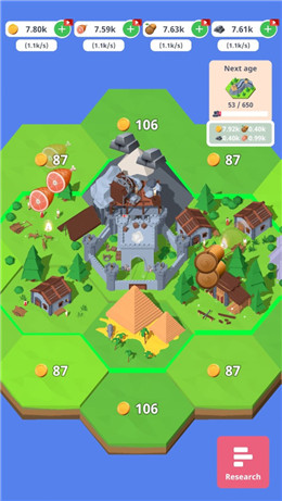 3、游戏虽然也是采用的建造、升级、金币解锁新的成就、图集之类的玩法,但是在建筑之间加入了平衡制约。