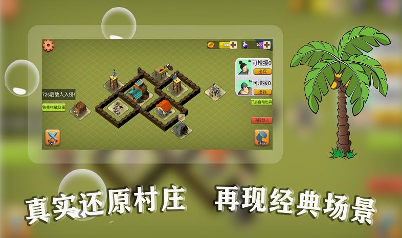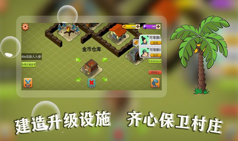 使用箭塔、迫击炮、城墙等防御设施保卫村庄。