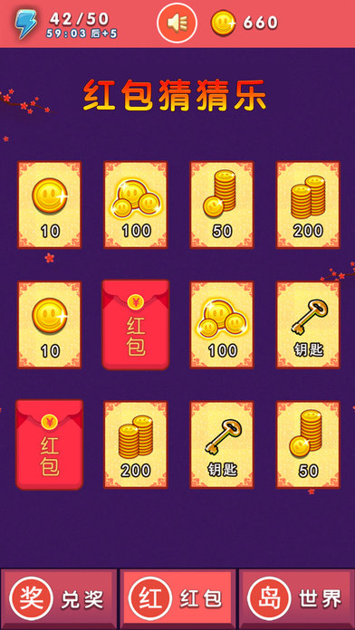 红包中获得钱在世界界面可以购买和岛屿。