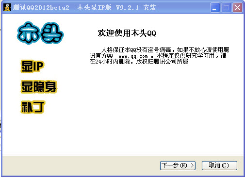 QQ2013最新显IP。木头QQ2013标准版,是基于腾讯官方的QQ2013添加辅助外挂实现的,不修改任何QQ2013的源文件。 QQ2013显IP不是梦,随着腾讯IP加密技术的日益完善, 现在市面上基本上已经难以看到可用的显IP辅助软件。木头QQ采用独创的第三代IP地址主动探测技术,配合在线获取地理位置信息功能,及囊括全国数万乡镇、街道的IP信息库,真正做到准确高效显IP,好友上网地点一网打尽,上线十分钟, 可大大增强IP获取率,如果需要快速显示可以采用发送截图!就可以立刻显示锁定对方的IP地理位置。