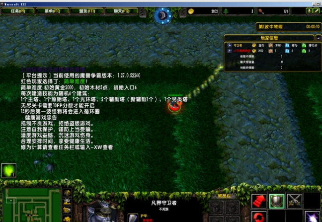 目前游戏只支持难度,地图共可八人一起游戏,每个人防守一个出怪口,每波30秒,渡劫前共计52波。在下一波来临之前若是清完自己出怪口出来的怪,则增加己身一点修为。渡劫前地图最大容怪数为玩家个数*60,渡劫时则为玩家个数*25。每波出怪随机多,中,少。多怪80个,中怪44个,少怪25个。