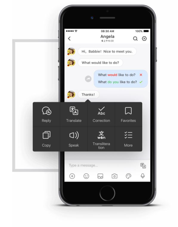 HelloTalk特有的音译功能,为非罗马语系的语言(中文,韩语,日语等)标注读音,让你就像学习罗马字母一样容易!