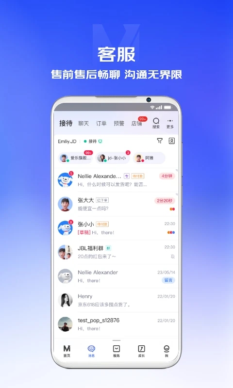 消息中心:商品信息、订单信息、官方公告等及时推送到手机。与买家沟通更便捷,支持消息多端统一,更快响应。
