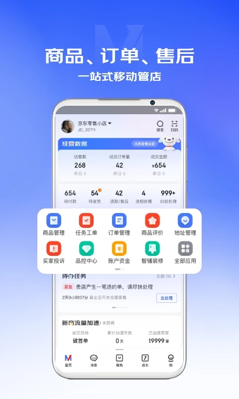 京麦意为“京东卖家”之意,京麦(移动版)是适用于京东所有商家使用的掌上管理平台。提供一站式的商家解決方案,整合了京东及第三方软件服务商(ISV),汇聚了丰富的服务插件,包含商品管理、订单管理、中心和商智等功能。