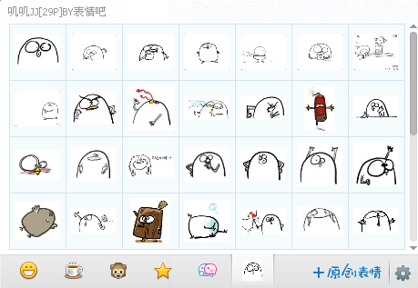 叽叽是一个外表的qq表情,脸部非常的形象,由于表情非常丰富,受到很多Q友们的喜欢,本站提供叽叽表情包下载,共包括吹泡泡、紧张、哼、生气、拍照、吐血、泪奔、吃货、看电影、呆、害怕、无语、喝酒、委屈、不给力、额等29个qq表情,欢迎下载收藏。
