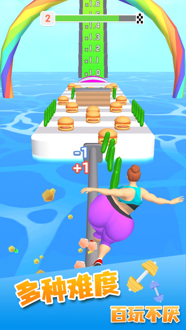 胖姐我最美是个非常容易上头的跑酷游戏,避开汉堡包,收集黄瓜来进行跑酷,还要小心各种陷阱,达到终点,看你能够瘦到多少呢。