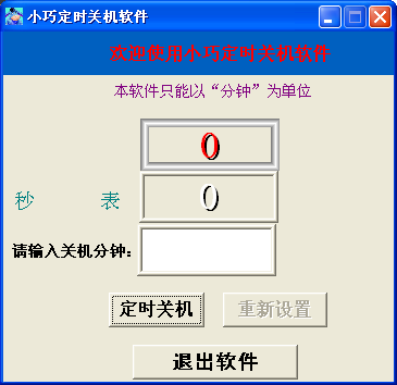 小巧定时关机软件是一款非常小巧的定时关机软件,有了这款软件,您就可以给自己的电脑设置倒计时关机而不必自己守候在电脑前关机。
