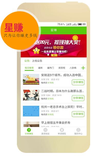 分享文章出去,别人阅读和自己阅读都是0.1元,这么高的收益除了星赚还有谁?