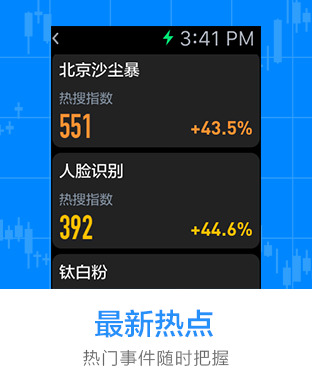 百度股市通Apple Watch版是由百度官方出品的一款,新版专为Apple Watch打造,用户可以在苹果手表上随时查看股票市场、实时热点等信息,可以与手机完美切换使用。可以方便广大股票第一时间掌握市场先机,快速操盘,提高选股智慧。