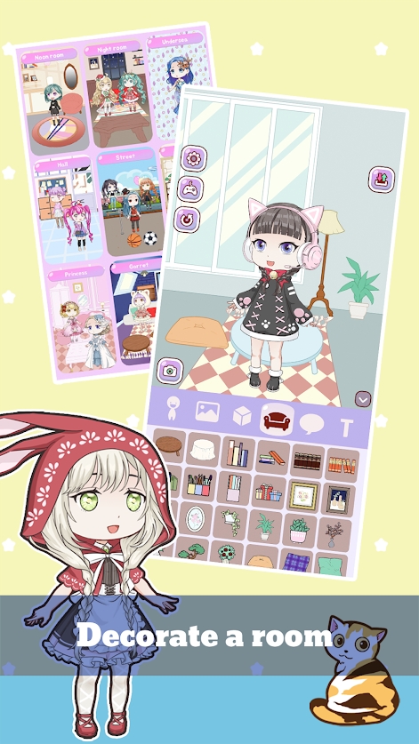 3、免费创建您自己的时尚头像和自我表情符号,装饰您的个人房间并看起来卡哇伊。