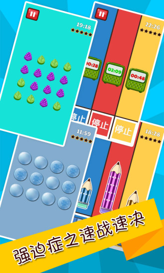 菇凉们骚年们,还有谁说自己是强迫症的吗?那就来治上三个疗程吧!史上最难强迫症游戏真真是专治强迫症,总是洗不干净的双手、左右不对称随便摆放的耳机、没有对齐的井盖、长短不一的铅笔、没有捏完的气泡膜、杂乱无序的……强迫症简直不能忍。再加上傲娇的评分,慢一点就少了一颗星星,重度患者怎么能忍受呢?尽管只有18个关卡,玩到手残也得补完5颗星啊!所以,玩游戏吧,让你不敢再得强迫症!