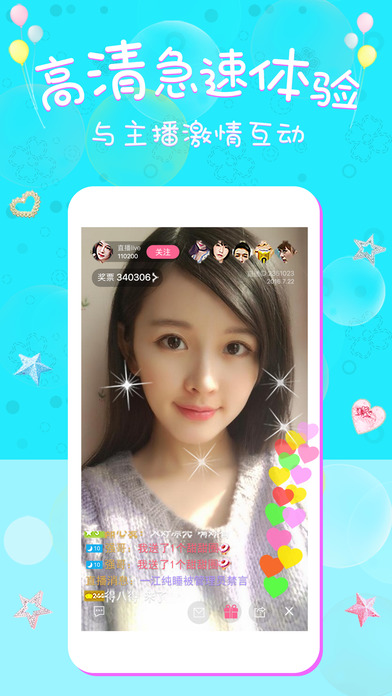聚集千万又可爱又漂亮的主播,最快乐的直播氛围,最好玩的卖萌特效,最炫酷的互动礼物。