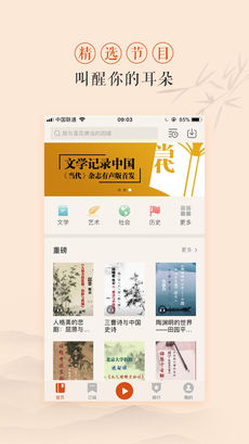 1、海量精品节目,涵盖文学、艺术、社会、心理等分类,好内容应有尽有。