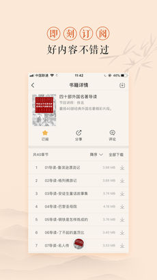 3、支持下载节目章节,wifi下载,随时随地可听,无需再消耗流量。