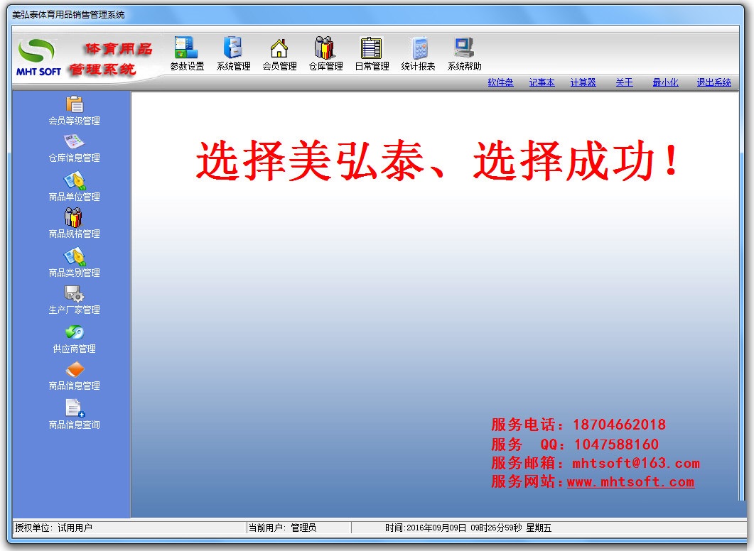 1、美弘泰体育用品销售管理系统官方版支持对会员等级、仓库信息、商品单位、商品规格等商品信息进行管理;