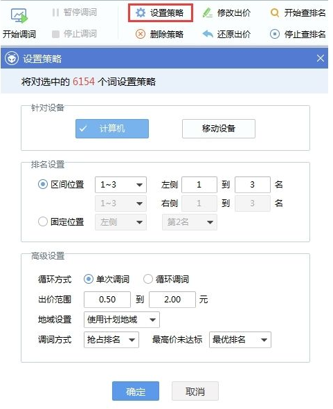 3、预设9种常用竞价策略,轻松抢排名、锁定竞争对手、保排名降出价,提升SEM优化效率
