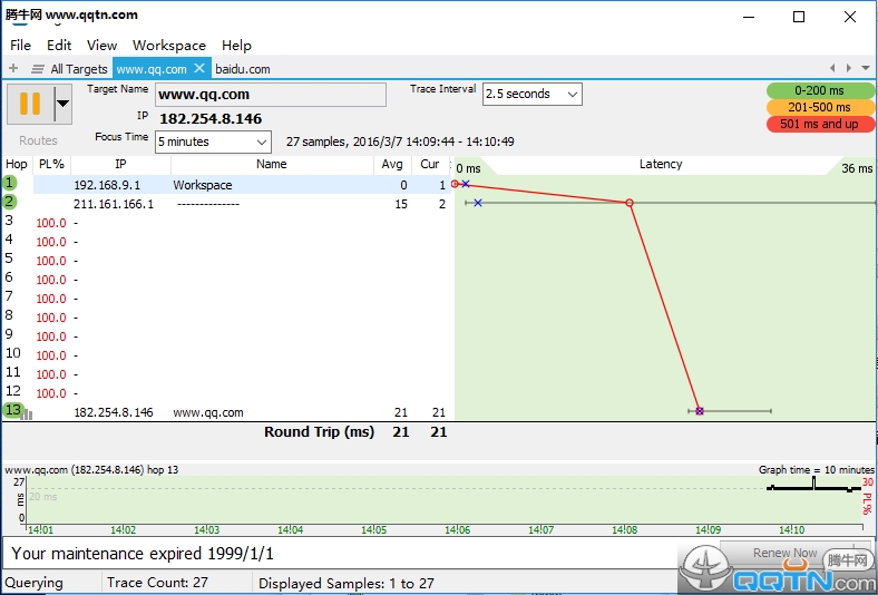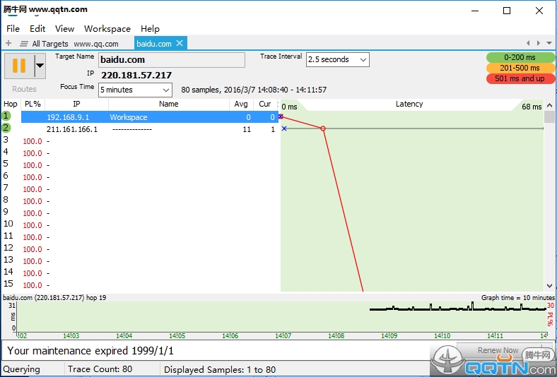 网络检测工具PingPlotter Pro破解版下载是一款能够监控和解决您的网络,有关远程主机,跟踪时延,丢包率和其他信息,与本有用的工具。你可以使用PingPlotter Pro的突发事件时发生仔细监视多个地址,并触发警报。