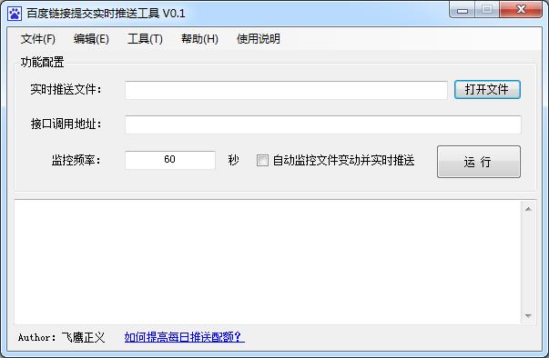 百度链接提交实时推送工具是一款帮助你实时推送站点链接的工具,这款软件可以帮助你实时推送站点更新的URL给百度。同时考虑到了部门同学的需求特别添加了“自动监控文件变化并推送”的功能,启用该功能后程序会按照指定的时间间隔自动去检查对应的txt文件是否有新的变化,如果有新的URL会再次自动提交。但是必须要注意的是再次更新指定的txt文件的时候务必清除之前已经提交过的页面,否则老数据也会一并被提交,老数据会暂用你的每天提交配额数量。