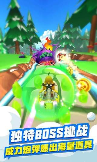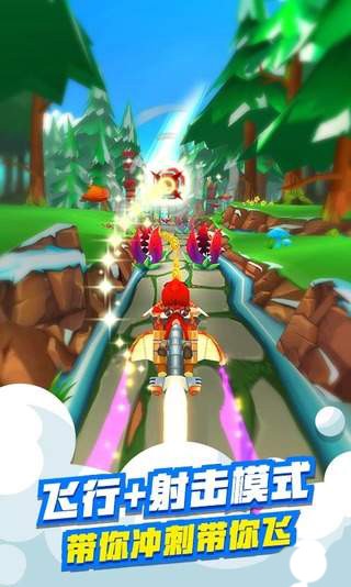 2、告别传统狂奔玩法,坐上飞行器穿越天空、河道、峡谷、旋转弯道等惊险和壮观的场景,赏心悦目之余还可挑战boss,充满挑战的新鲜玩法让你好玩到停不下来。